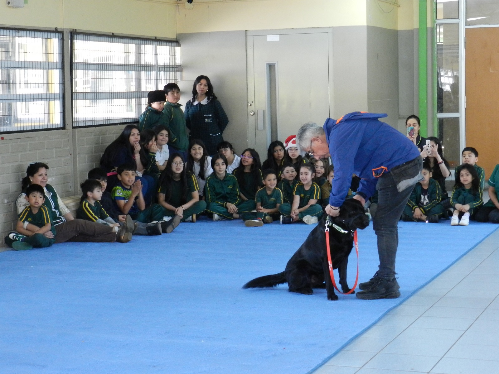 Estudiantes de diversos cursos participaron activamente, aprendiendo sobre el cuidado, el respeto y la protección de los animales, junto con la importancia de la Ley Cholito y del uso del microchip como herramienta fundamental para la seguridad y bienestar de las mascotas.